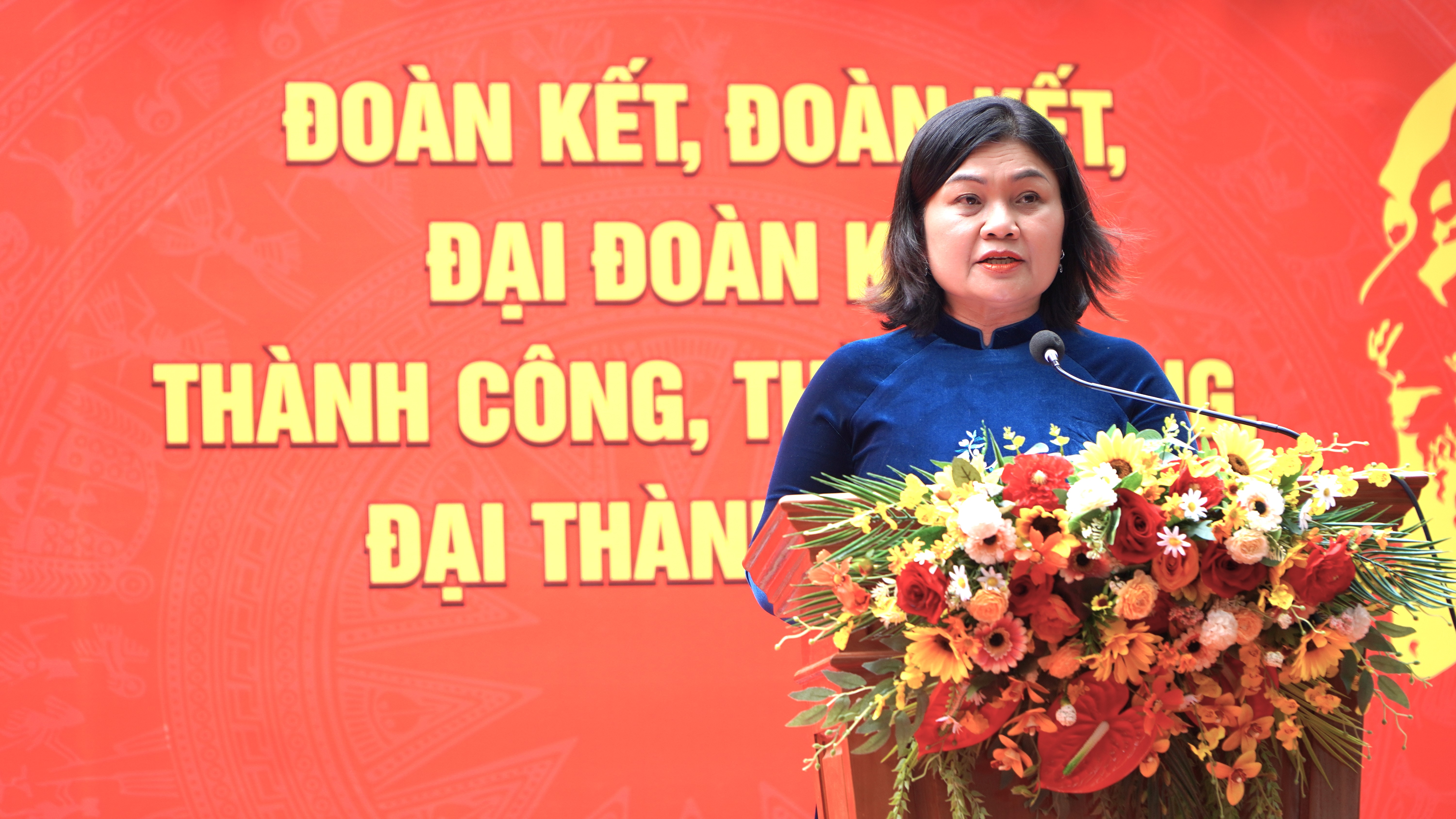 Đồng chí Đinh Thị Thu Thanh, Ủy viên Ban Thường vụ Tỉnh ủy, Trưởng Ban Tuyên giáo Dân vận Tỉnh ủy phát biểu tại buổi lễ.
